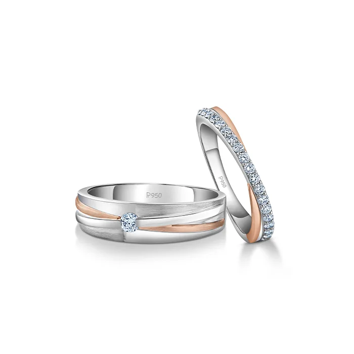 Designed with a delicate ribbon of rose gold entwined with platinum – a quiet reminder of how your worlds unite , effortlessly blending into one another, truly inseparable – a love language that has a bit of both of you – making it unique!